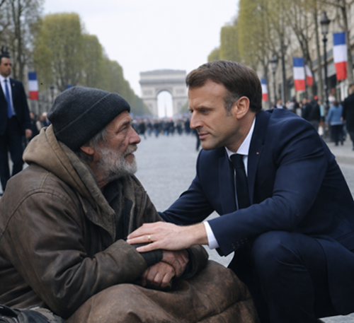Un SDF assis sur les Champs Élysées, voit une limousine s’arrêter.