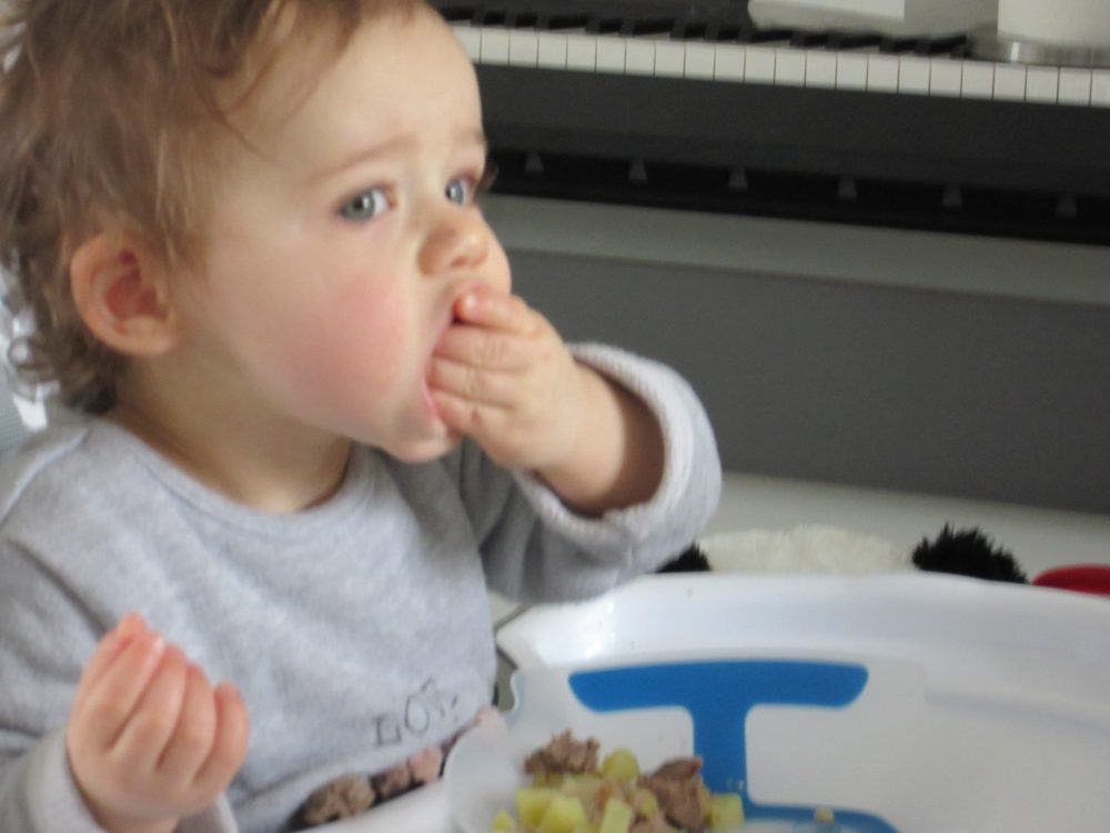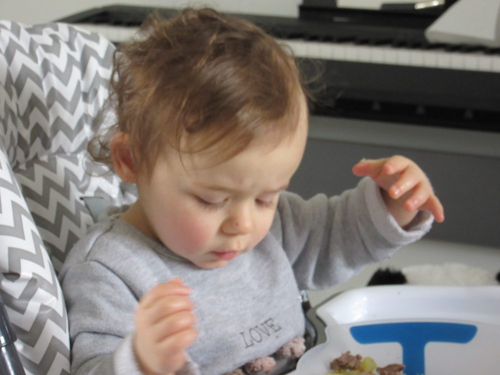 J’adore la photo quand ta petite fille mange avec ses mains ..