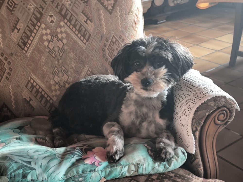Revenue en compagnie de Pupuce dans mon île de Batz, nous avons repris nos marques dans la maison, surtout la petite chienne, qui s’est précipitée dans le fauteuil qu’occupe le chat Théo d’habitude…