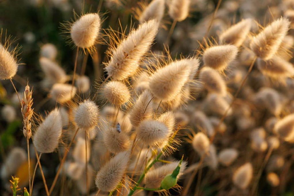 Pour constituer de beaux bouquets secs qui dureront tout l’hiver, cueillez Lagurus Ovatus par temps chaud et sec au mois d’août par exemple.