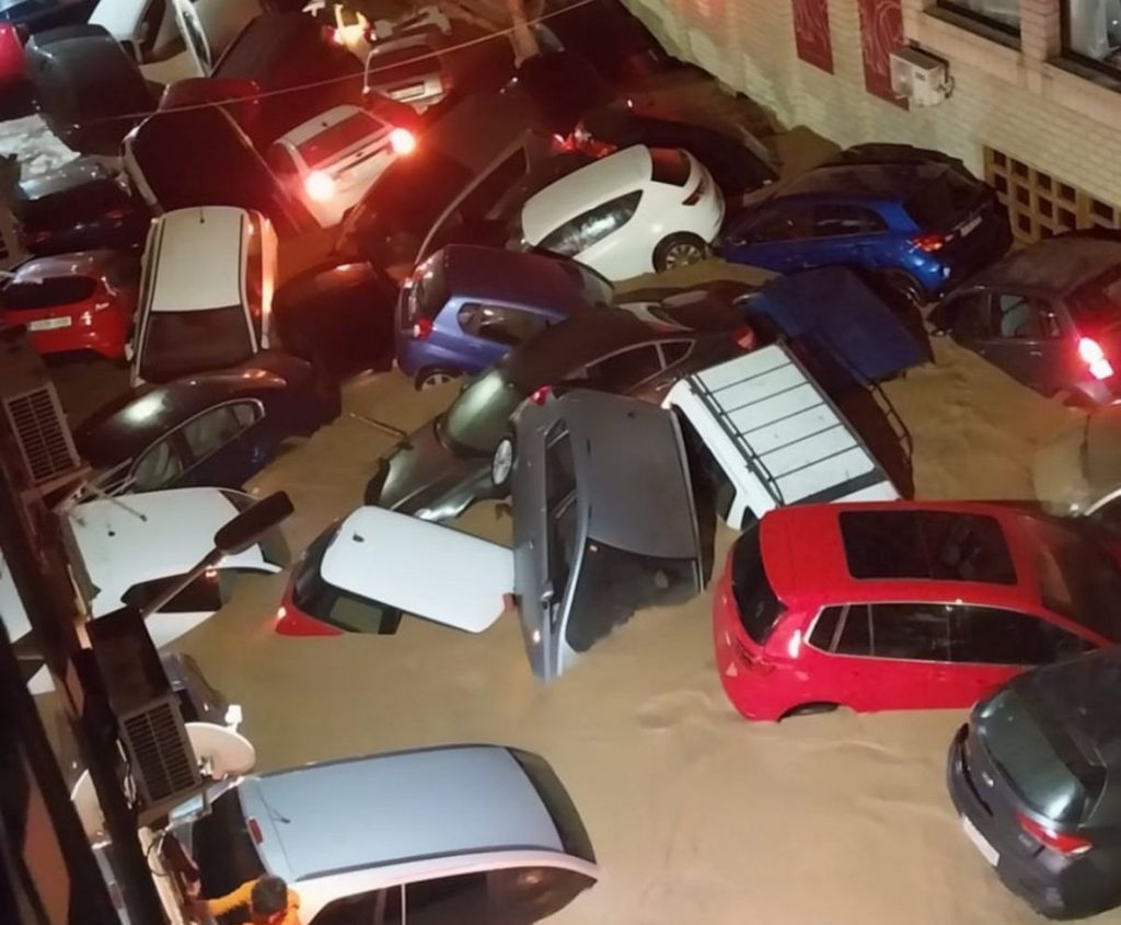Enchevêtrement de voitures dans les rues de Paiporta (Espagne) en 2024 – @Seekkoo