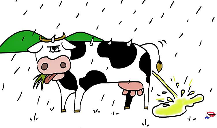 Origine : Cette expression date de la deuxième moitié du XIXe siècle. Il s’agit d’une image pour dire qu’il pleut beaucoup puisque, effectivement, une vache qui urine déverse une quantité assez impressionnante de liquide dans l’herbe. Cette expression fait allusion à l’autre locution « pleurer comme une vache ».