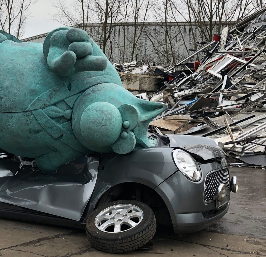 Chiens, chats, grenouilles, hérissons et mouchettes écrabouillés chaque jour par des bolides roulant à tombeau ouvert, il était bien temps que l’on se décide à dédier une sculpture à la mémoire des bestioles victimes des violences routières !
