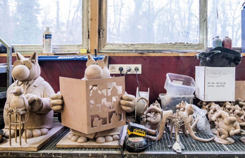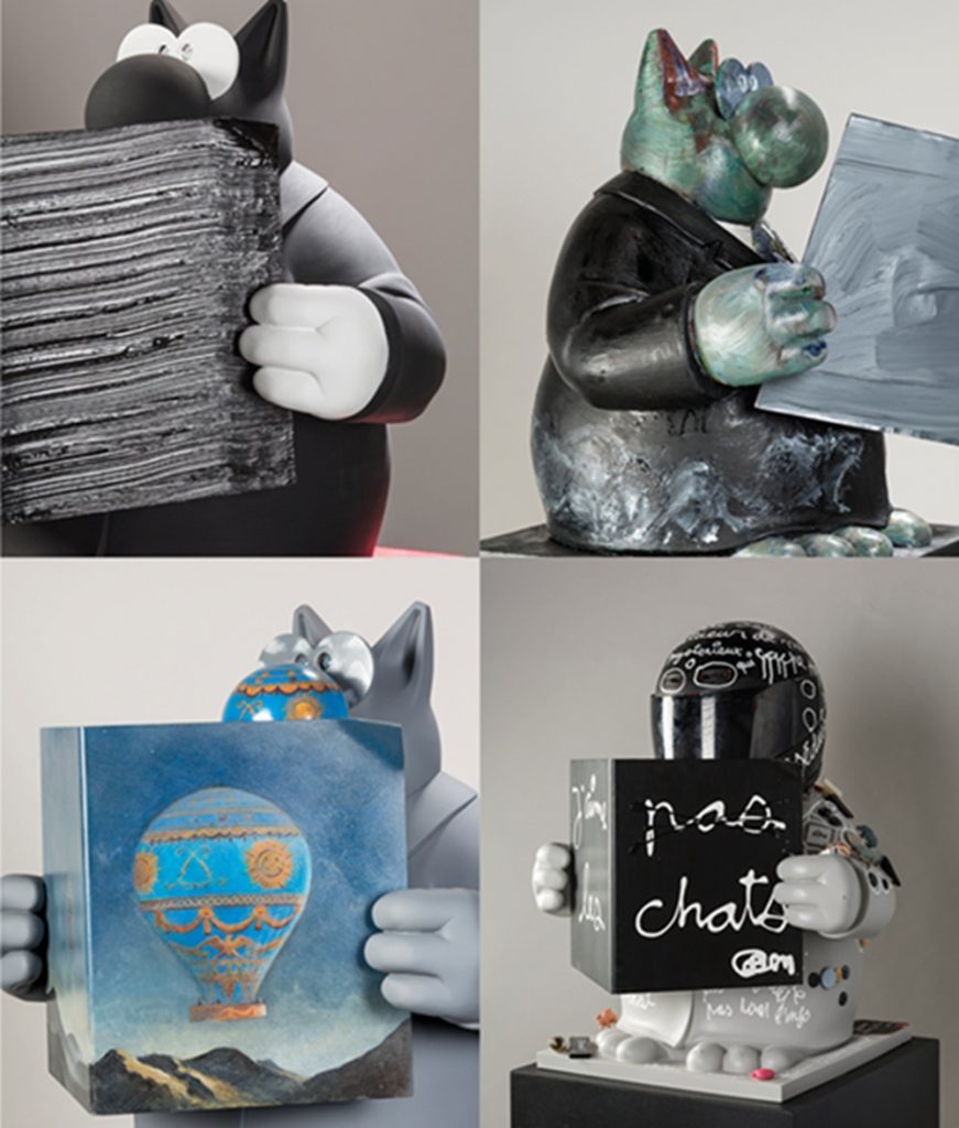Bien des années plus tard, Geluck a créé « Le Chat au journal », à l’occasion d’un gala de solidarité. Pour apporter des sous au Fonds Érasme pour la recherche scientifique, l’artiste a créé cette sculpture et demandé à de prestigieux confrères d’en customiser un tirage en résine.