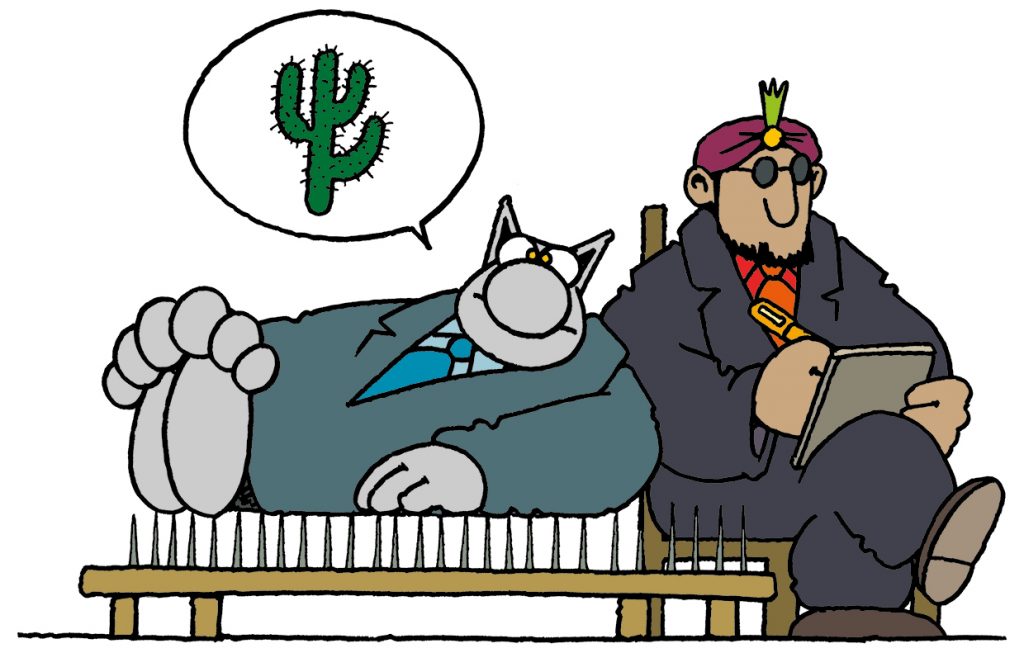 À son tour, Philippe Geluck nous entraîne dans des contrées mystérieuses, avec son interprétation personnelle du fakir. Après tout, le thème s’inscrit tout à fait logiquement dans l’oeuvre du dessinateur : légèreté et pesanteur, c’est tout ça Le Chat.