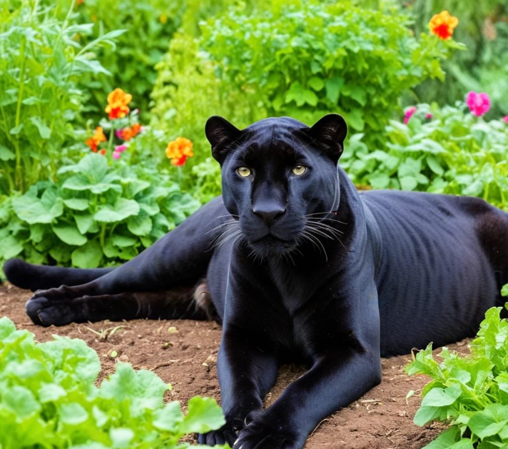 Un matin, au potager, alors qu’elle arrosait ses légumes, elle remarqua une panthère noire en train de se prélasser près de son potager. Osant s’approcher, quoiqu’effarouchée, elle lui dit :