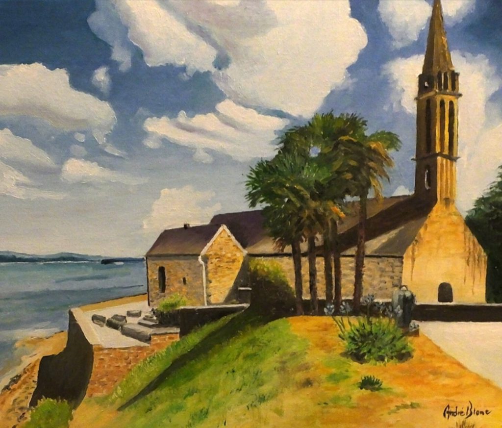 La première toile avec l’Église est lumineuse et pleine de sérénité. On ressent presque la brise marine.