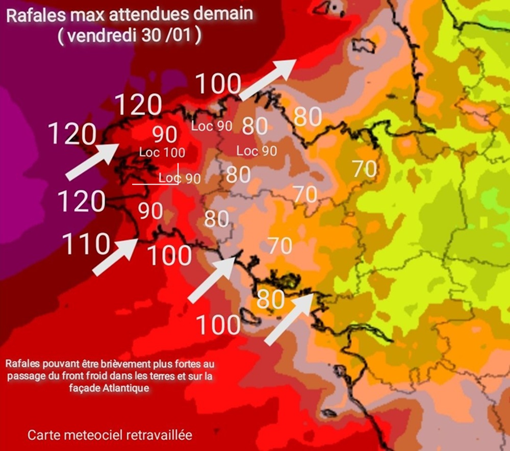 Quant aux inondations, n’en parlons pas ! La Bretagne a été particulièrement touchée. Météo France notait encore que les cumuls de pluies au 28 janvier avaient dépassé par endroits des valeurs les plus élevées mesurées