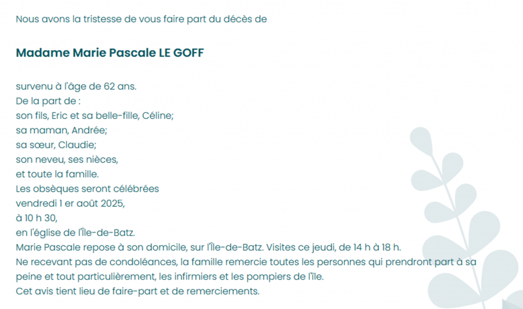 Tout d’abord toutes mes sincères condoléances pour cette dame partie bien trop tôt hélas !!!!